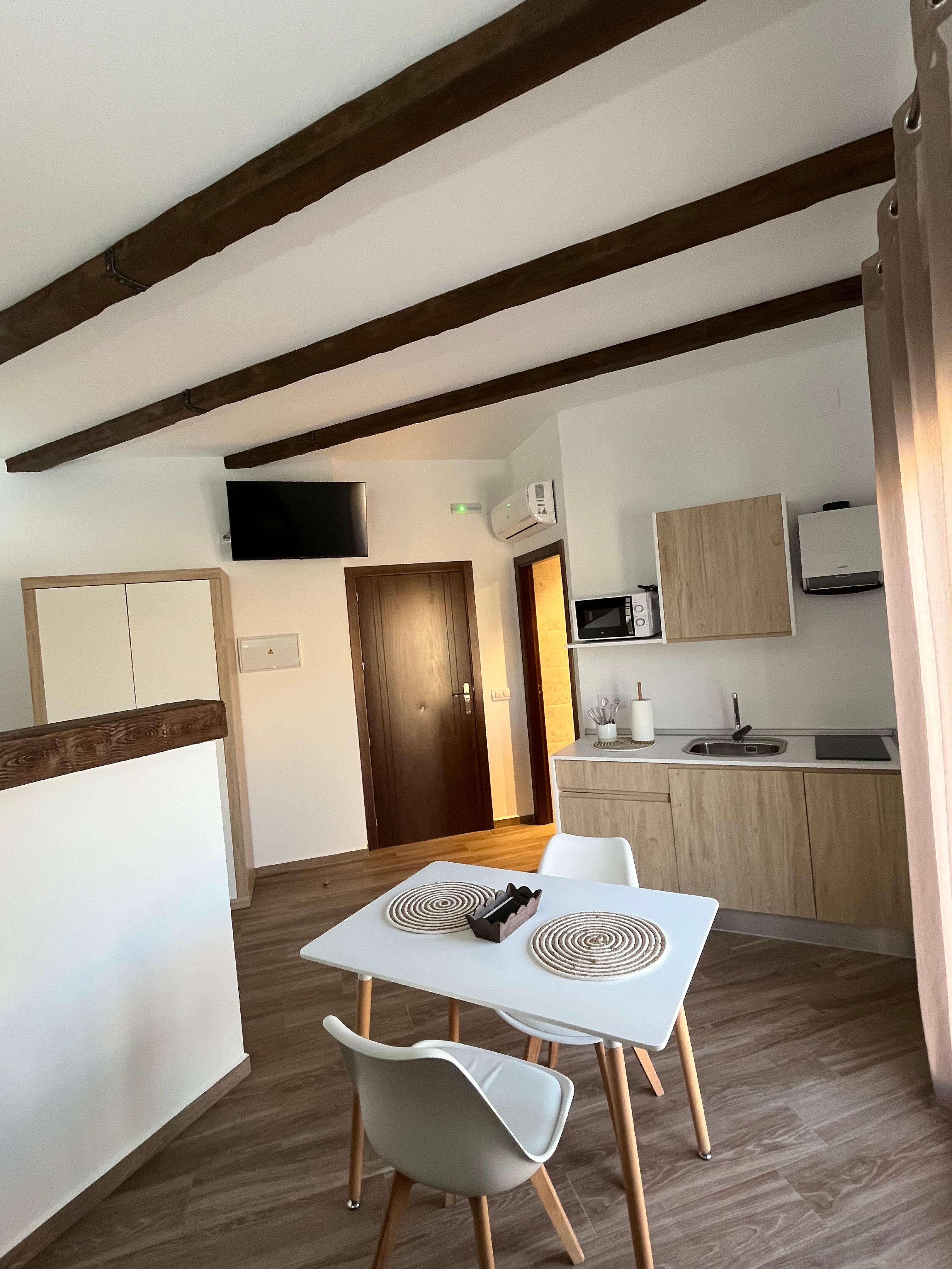 Nuestro complejo rural está formado por 8 apartamentos tipo estudio, diseñados para ofrecer una estancia práctica, acogedora y relajante en plena naturaleza. Cada estudio integra en un mismo ambiente todas las comodidades necesarias para disfrutar de una experiencia confortable.