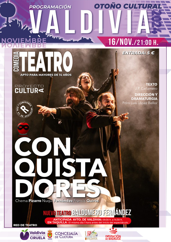 Tres actores excelentes en dicción y movimientos con una potencia extenuante, Chema Pizarro, Amelia David y Francis J. Quirós, construyen una magistral y divertida parodia de la conquista de América por los españoles: 'Conquistadores'.