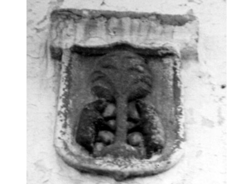 El escudo D se encontraba situado en la fachada del número 22 de la Calle Constitución, con esquina a la calle General Cariacedo. En la actualidad el solar lo ocupa una vivienda de reciente construcción, y no aparece que el escudo original en la fachada. La fachada original la formaba puerta con dos ventanas a cada lado, ambas con rejas de hermosa factura. Sobre la puerta se situaba el escudo que representaba un árbol (posiblemente una encina) con dos jabalíes rampantes, uno a cada lado del árbol.