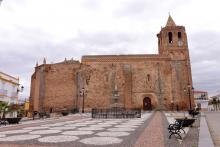 Se trata de un magnífico ejemplar de la arquitectura mudéjar del siglo XVI en la Baja Extremadura. Está realizada en su totalidad por mampostería y ladrillo, existiendo en menor medida algunos sillares de granito colocados para reforzar las bases de determinados contrafuertes, sobre todo los de la cabecera. El elemento más destacado del exterior del templo es la torre que es fachada principal al tiempo que campanario. El retablo mayor es de tipología clasicista, de planta lineal y adaptado a la cabecera del ábside. Hay que destacar los Retablos del Cristo Crucifiado y de San Antonio.